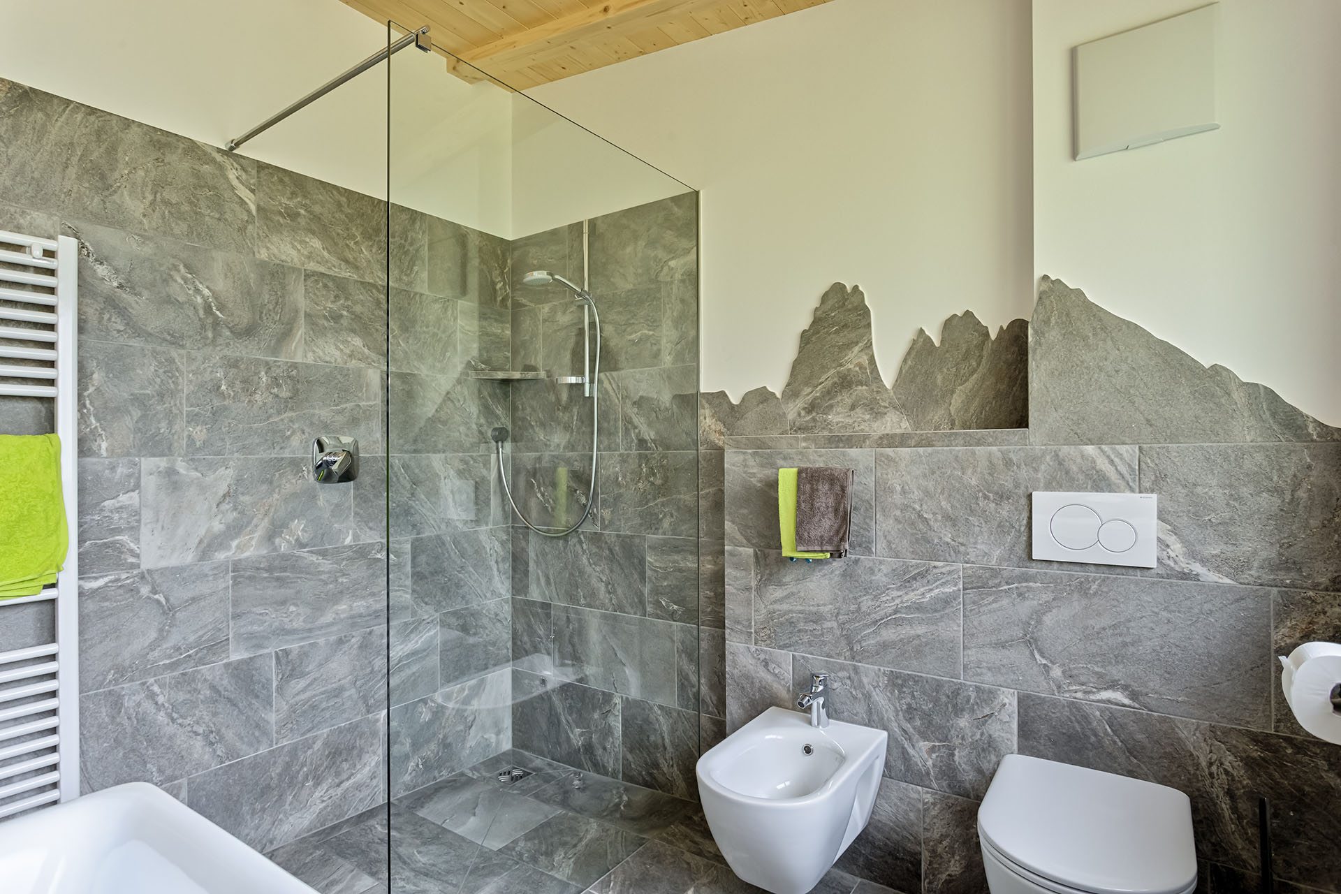 - bagno spazioso con doccia, WC, bidet e asciugacapelli